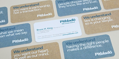 Pitblado Law used simple and approachable ingredients for their law-firm brand and corporate logotype. The same recipe was adapted to create a family of program specific logos including the Pit-U Learning Centre, A.M.P. Associate Marketing Program, the BizStart New business program, LOL Law on-line consumer products, and Raising the Bar for community initiatives.