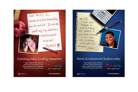 The Leader in Me is FranklinCovey’s whole school transformation process. It teaches 21st century leadership and life skills to students and creates a culture of student empowerment based on the idea that every child can be a leader. This word mark made its start in primary schools where its simple bold colours connected to teachers and students alike.